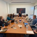 Red Lips for the Ladies had their kick-off at a space owned by The Baldwin Group (thank you, Chriss Spires!). Women of all ages mingled and noted each other's festive lip colors. We enjoyed wine, mocktails, fruit, cookies, and charcuterie. I met a few new folks, and we made our way to the conference room. The ladies running the group were introduced. We played a BINGO icebreaker, where the winners received a signature red lipstick. Later, raffle winners were announced, and I was lucky enough to leave with my very own brand new #RedLipsForTheLadies tee.